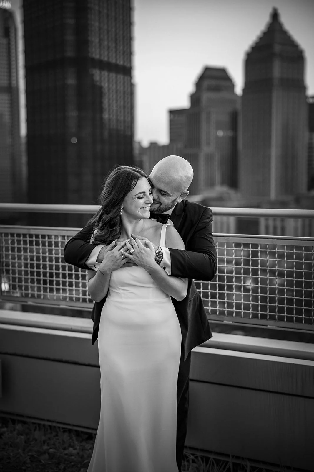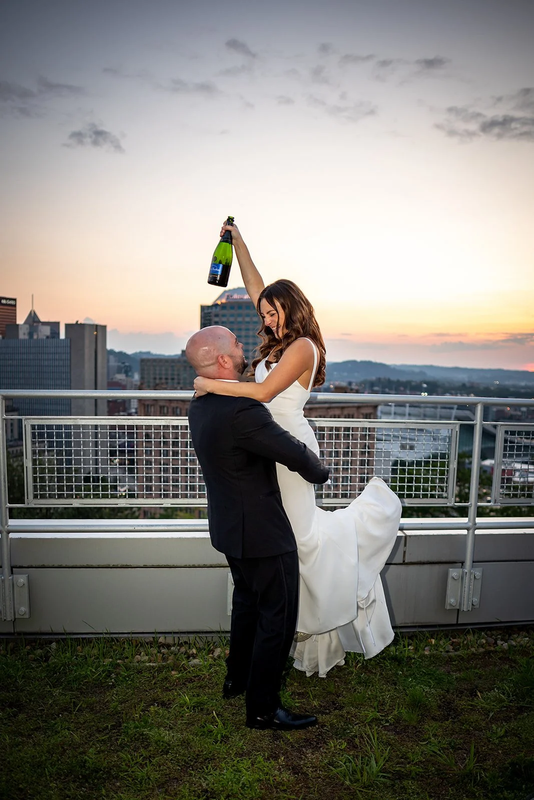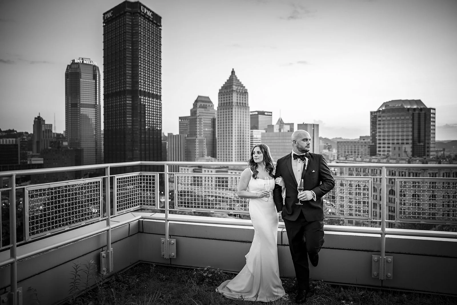 The Green Roof boasts incredible views of downtown Pittsburgh. With its dramatic skyline views and lush green floor, the Green Roof is the perfect spot for wedding photos.
