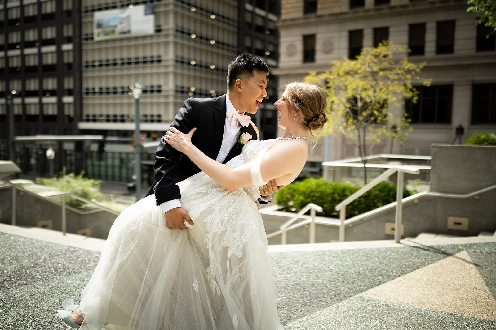 The Omni William Penn Hotel is a historic hotel built in 1916 in the heart of Downtown Pittsburgh. It boasts four amazing spaces to serve as a backdrop for your wedding and enough rooms to accommodate all your guests! The William Penn has it all, from the old-world, timeless elegance of the Grand Ballroom to the art deco style of the Urban Room. In addition to the exquisite architecture of the hotel, you are also treated to two beautiful greenspaces, Mellon Square and Mellon Green, on either side of the hotel! The Point, The North Shore, The Strip District, and many more quintessential Pittsburgh highlights are all just minutes away from the William Penn, making it the perfect location.